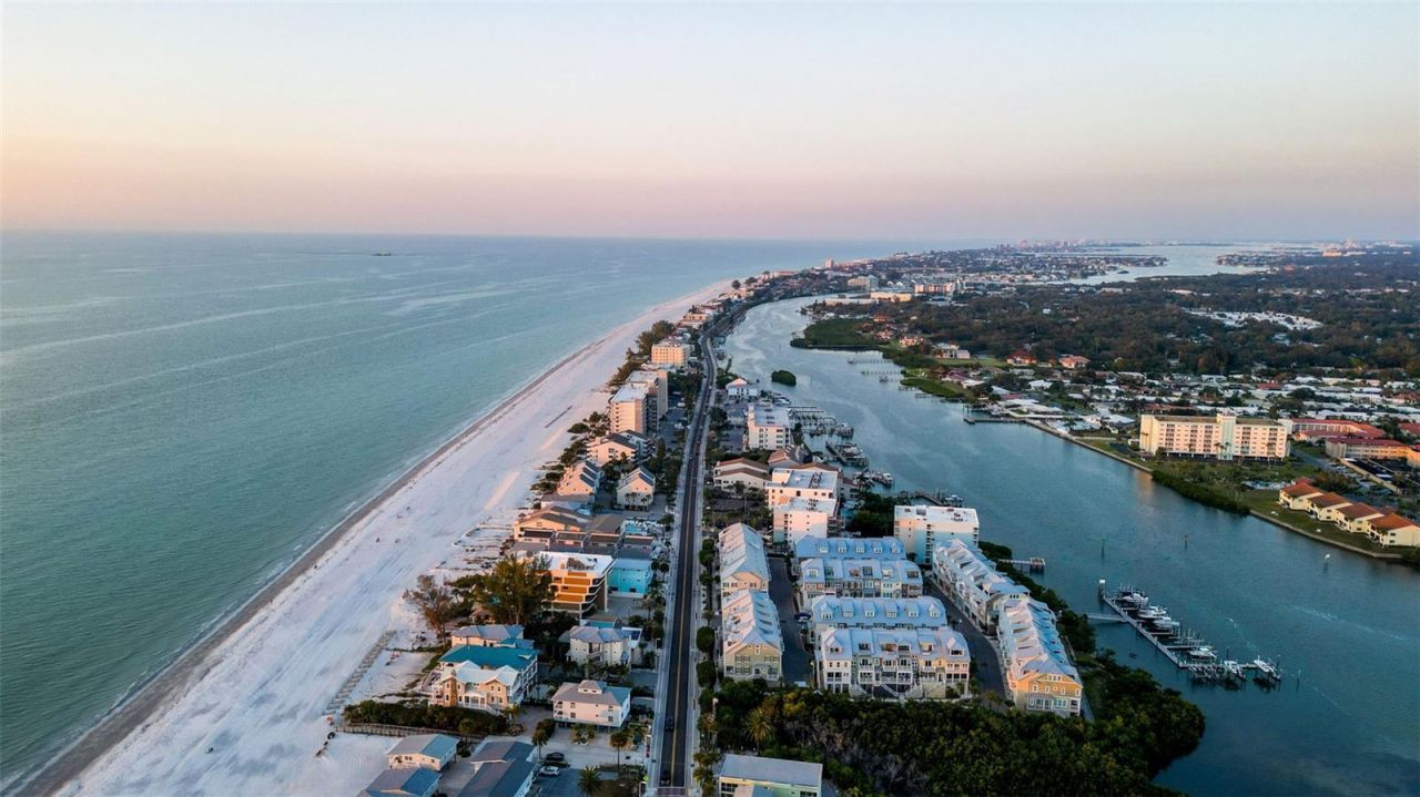 Experience coastal living at its finest in this 4-level townhome with Gulf and Intercoastal views. Just steps to the beautiful beaches of the Gulf! The home features 4 bedrooms and 4 baths, is 2,236 sq/ft and comes fully furnished with High-end Restoration Hardware and Crate & Barrel furnishings. A 40-foot boat slip with 10,000 lb. lift and two Sea-Doo Jet Skis are available for separate purchase. The home is newer constructed by renowned builder Ashton Woods of solid concrete block on all 4 levels, pilings to bedrock, metal roof, and Miami-Dade storm-rated windows/doors, offering peace of mind and luxurious comfort. A private elevator services all four floors, leading to a chef's kitchen featuring solid wood cabinetry, quartz countertops, a gas range, and stainless-steel appliances. The open-concept design flows seamlessly onto multiple balconies, providing views of both the Intracoastal Waterway and the Gulf of America. High-end Restoration Hardware and Crate & Barrel furnishings are included, making it truly move-in ready-even the kayaks, and beach gear convey with the sale! The 2017, well maintained Sea-Doo Jet Skis (with under 30 hours of usage each) are included with the highly sought-after boat slip and 10,000 lb lift if purchased separately. A spacious fourth-level bonus room (potential 4th bedroom) and an oversized 3-car garage provide ample space and flexibility. Enjoy community amenities like a heated pool and grilling station, walk directly across Gulf Blvd to the white sandy beaches to take in the most amazing sunsets you have ever seen. Waterside is close to so many popular restaurants, shops and more! Just 40 minutes to Tampa International Airport and an even closer drive St. Pete/Clearwater Airport. Explore all of the unique beach towns, spectacular views, boating, fishing, snorkeling, paddle boarding, wildlife viewing and so many more activities living in famous Pinellas County - the best of the Florida coastal lifestyle. Schedule your private showing today!